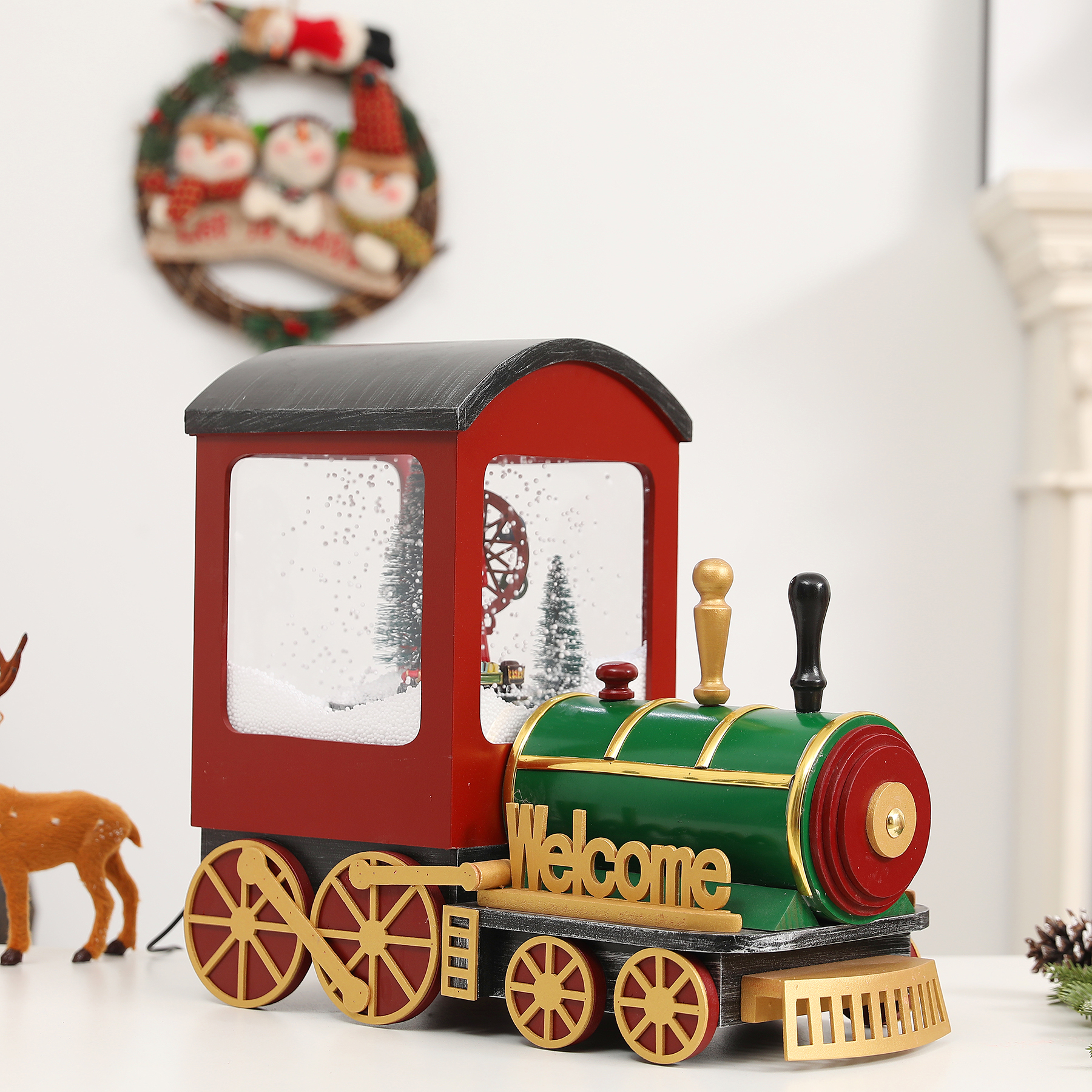 Function : Snowing , Light, Play 8 Christmas melodies circularly, Movement (inside figure ).