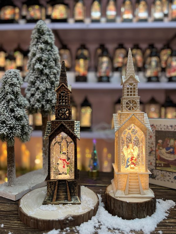 Water Glittering & Swirling Christmas Church BLX36-C